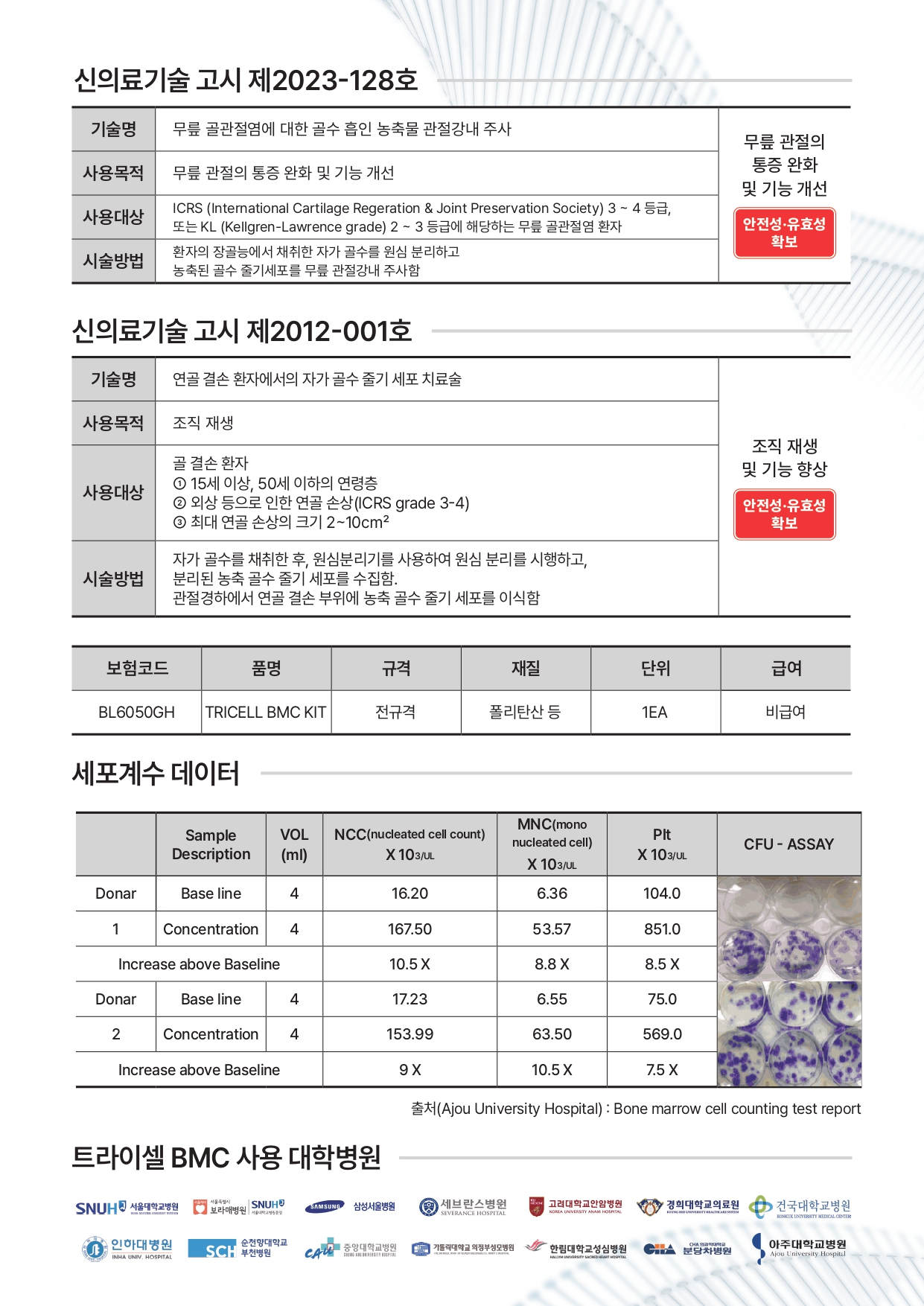 *TRICELL BMC KIT (골수세포 농축용 추출키트)(대리점용)